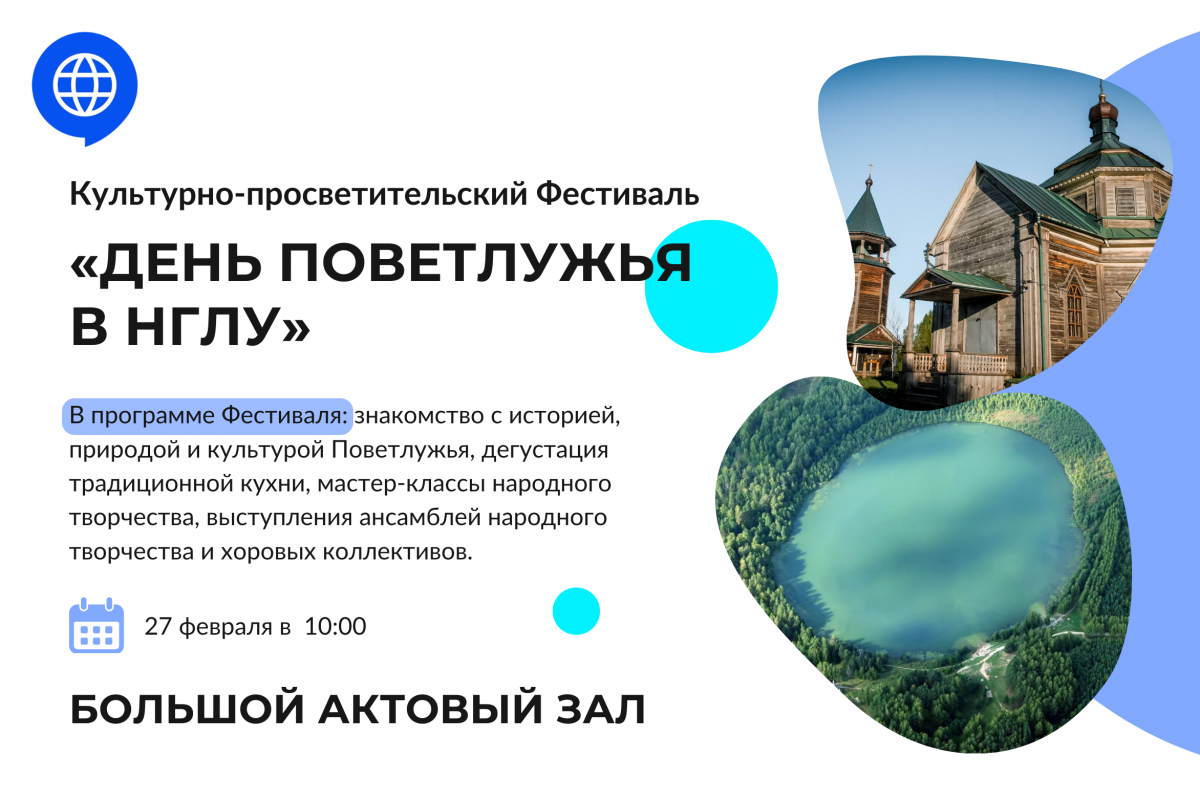 Высшая школа социальных наук и МАУ Природный парк «Воскресенское Поветлужье» приглашает всех желающих на культурно-просветительский Фестиваль «День Поветлужья в НГЛУ».