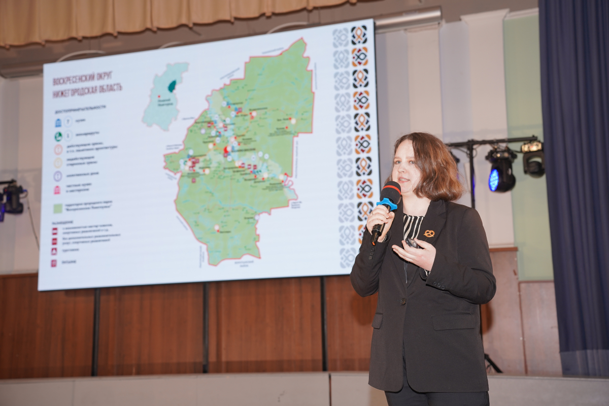 А директор МАУ «Природный парк «Воскресенское Поветлужье» Дарья Волкова провела подробную презентацию «Воскресенский округ. Опыт реализации проектов в сфере развития туризма».