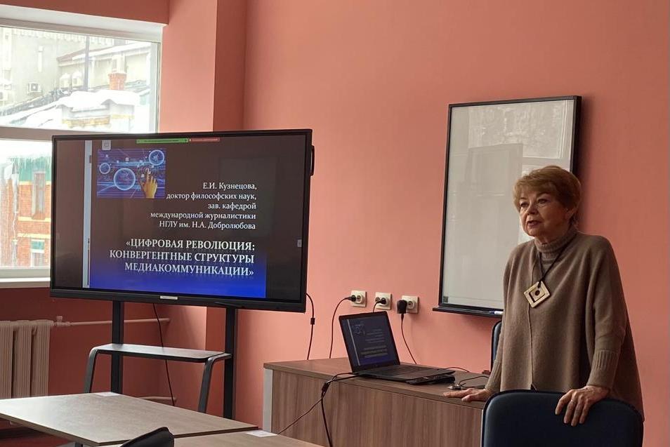 Участие кафедры международной журналистики в Фестивале LunnScience отрылось лекцией «Цифровая революция: конвергентные структуры медиакоммуникации», которую провела доктор философских наук, зав.кафедрой международной журналистики Елена Кузнецова. Слушателям в университетской аудитории «Учитель будущего» и участникам на платформе Zoom был предложен живой диалог о современных революционных коммуникативных процессах, которые пронизывают все социальные процессы и постепенно становятся нашей повседневностью.