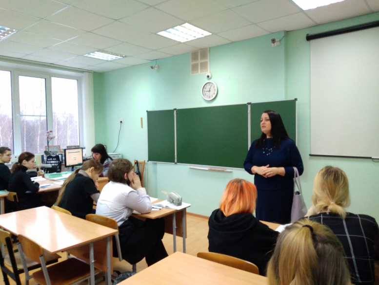 В феврале прошла профориентационная встреча Арины Браговой, кандидата исторических наук, доцента кафедры теории и практики французского, испанского и итальянского языков НГЛУ им. Н.А. Добролюбова, с учащимися 9-х и 10-х классов школы № 22 г. Нижнего Новгорода.