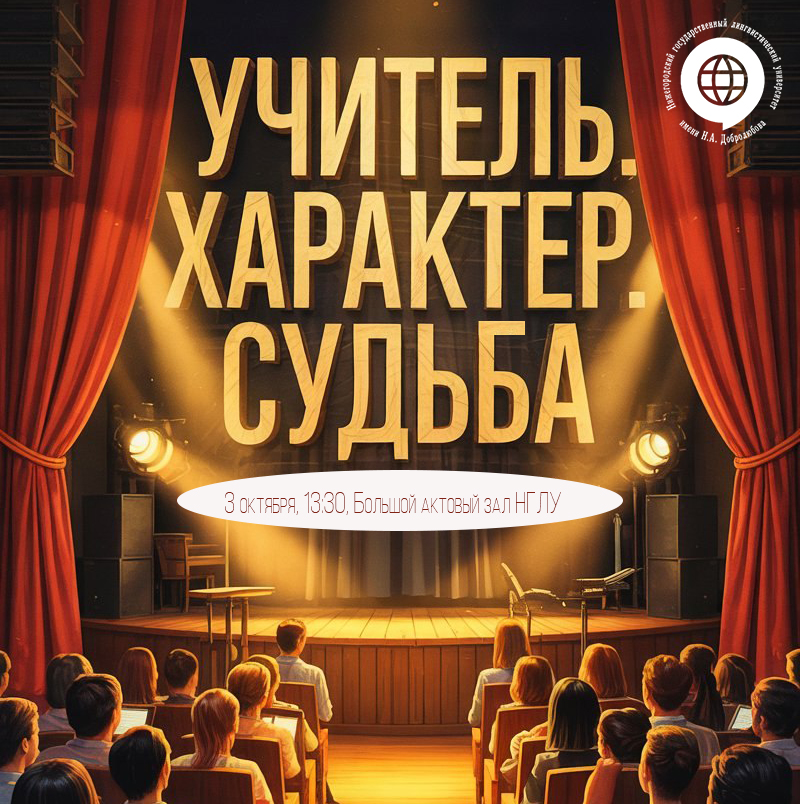 3 октября в 13:30 в Большом актовом зале пройдет творческий концерт-подарок «Учитель. Характер. Судьба», и мы приглашаем всех студентов, преподавателей и сотрудников присоединиться к этому празднику. Это событие станет отличной возможностью выразить свою признательность педагогам, а также познакомиться с творчеством студенческих объединений НГЛУ.