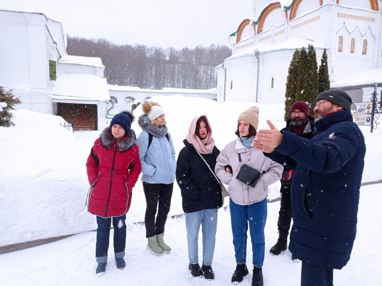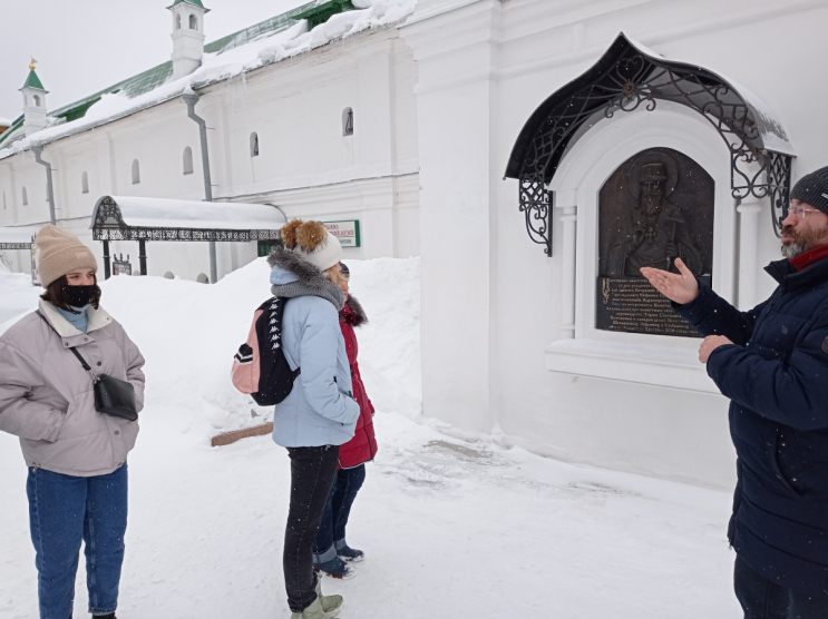 В воскресенье 13 февраля группа студентов Высшей школы перевода НГЛУ побывала на экскурсии по территории Вознесенского Печёрского монастыря. Увлекательный рассказ об истории обители, жизни и подвижническом пути её основателей, а также о новейшей истории известного во всём православном мире мужского монастыря представил Евгений Павлов.