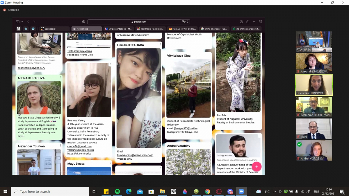В декабре 2021 года в онлайн-формате состоялся Японо-Российский молодёжный форум. Форум является одним из основных мероприятий Плана российско-японских молодежных обменов на 2021 год и проходит под девизом «Российско-японское сотрудничество – вместе в будущее».