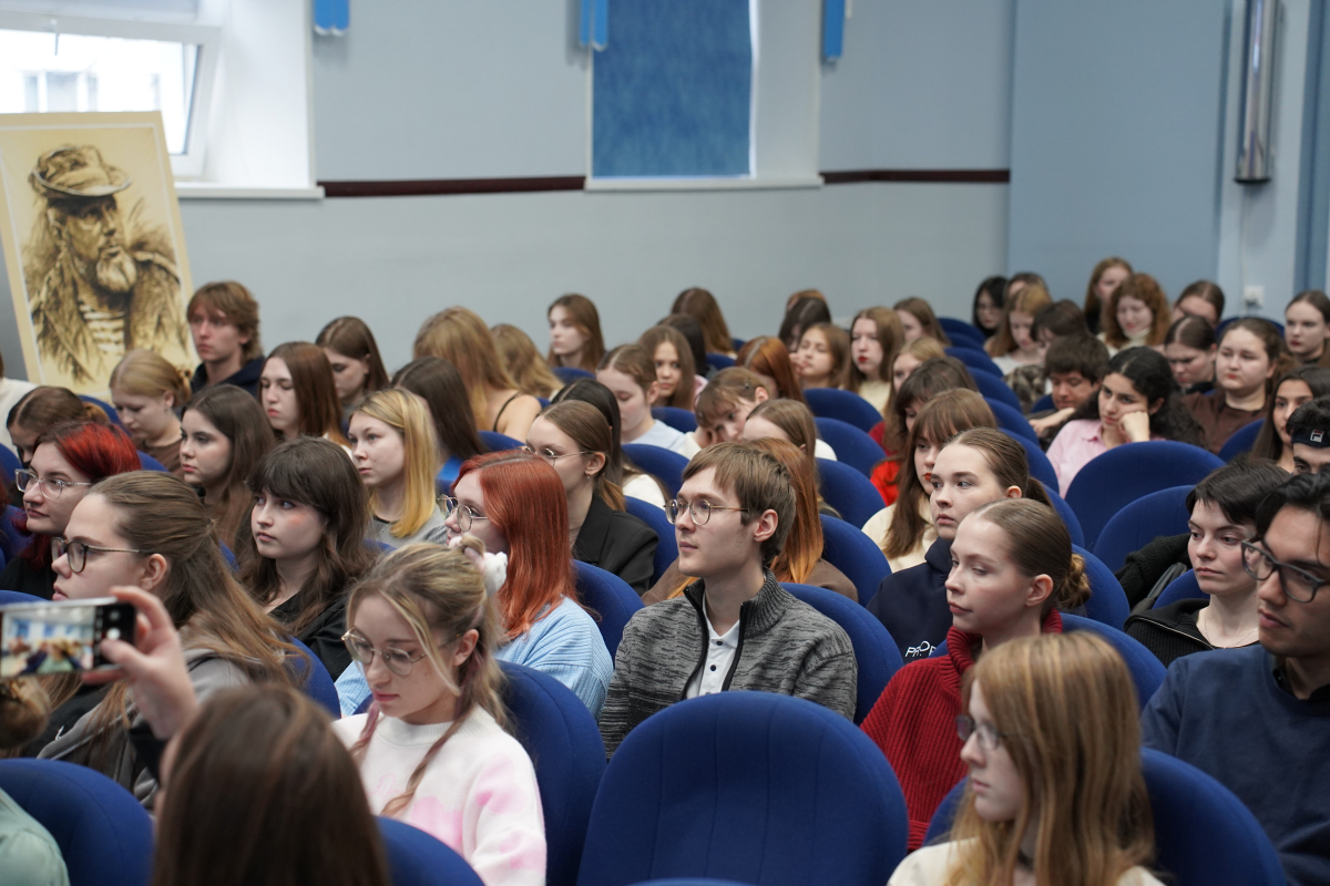 Студенты имели возможность не только увидеть работы Сергея Марченко, но и задать ему вопросы, узнать о процессе создания портретов и о том, как он выбирал своих героев.