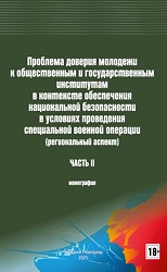 Проблема доверия молодежи к общественным и государственным институтам в контексте обеспечения национальной безопасности в условиях проведения специальной военной операции (региональный аспект): Монография. Часть II / кол. авторов; под общ. ред. С. В. Устинкина, А. В. Никитина. – Нижний Новгород: НГЛУ, 2025. – 332 с. ISBN 978-5-85839-479-2 Сотрудники и партнеры международной междисциплинарной научно-исследовательской лаборатории «Изучение мировых и региональных социально-политических процессов» исследовали динамику изменения параметров ценностных ориентаций учащейся молодежи Нижегородской области в ходе СВО под влиянием социально-экономических и мировоззренческо-идеологических факторов; потребительских стандартов населения; семейных ценностей; образования, исторического просвещения, языка, сохранения исторической памяти, культуры доверия к институтам государства и общества; роли СМИ в освещении СВО; использования опыта денацификации Германии, Австрии, Италии для определения возможности его применения в ходе СВО; определения эффективности идеологического сопровождения СВО; повышения действенности государственно-патриотического воспитания молодежи. Работа выполнена в рамках государственного задания Министерства науки и высшего образования Российской Федерации (тема «Проблема доверия молодежи к общественным и государственным институтам в контексте обеспечения национальной безопасности в условиях проведения специальной военной операции (региональный аспект)») (FSWZ-2023-0031). |